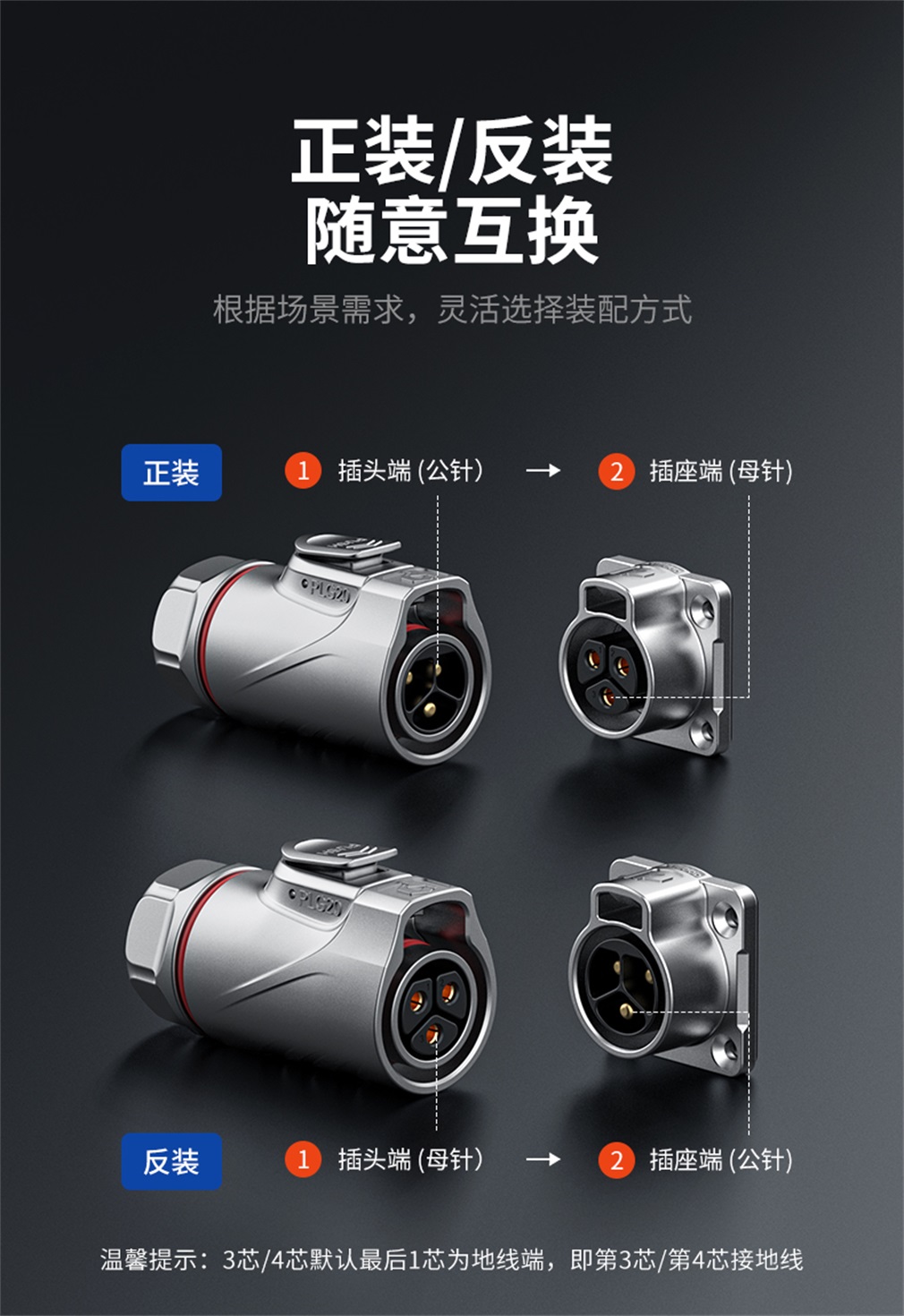 PLG20 2芯30A四孔法兰套装全金属焊接正装