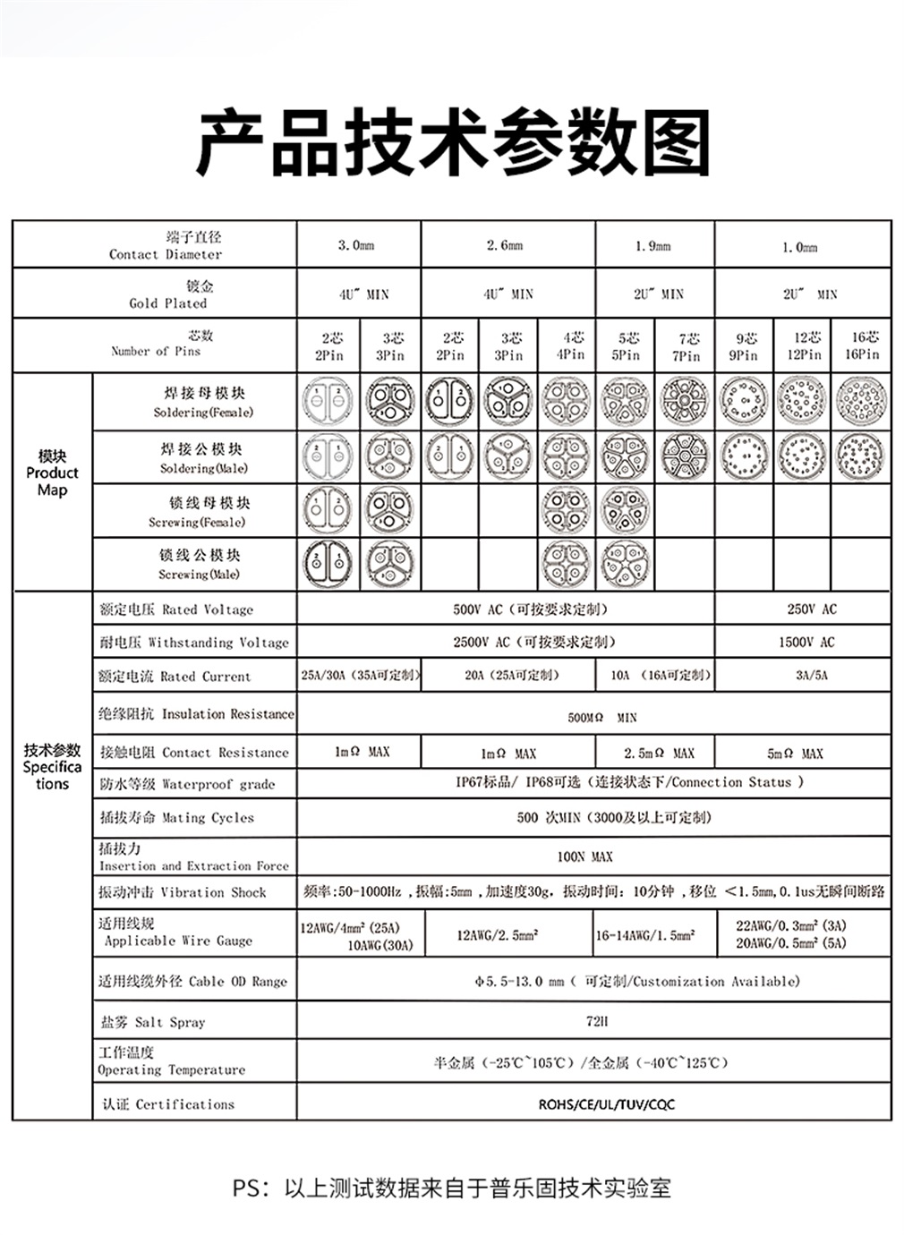 适用线径(2~16pin): 5.5-13.5mm
