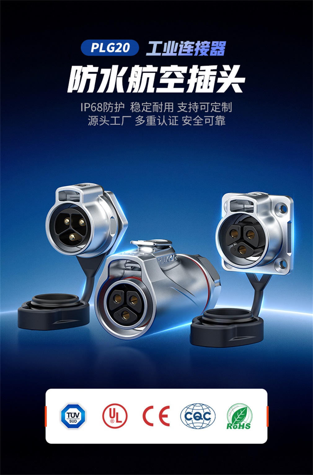 PLG20 2芯 全金属公插头
