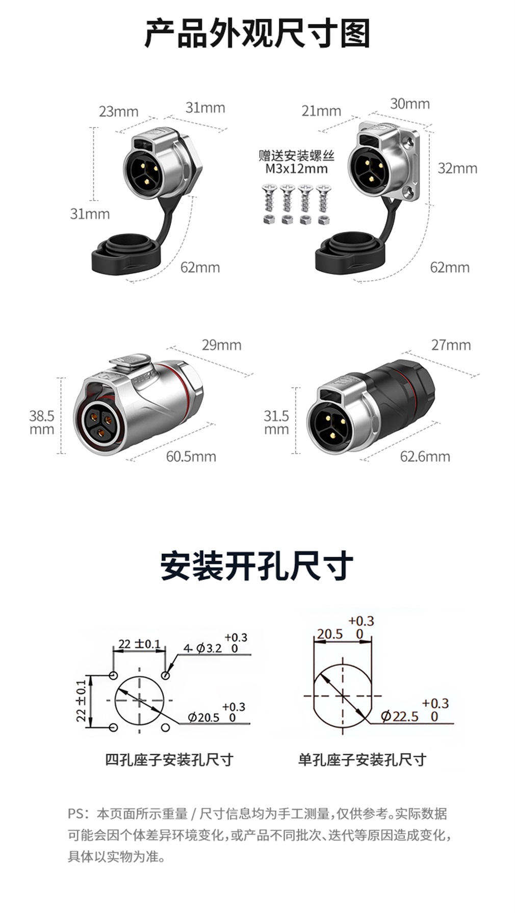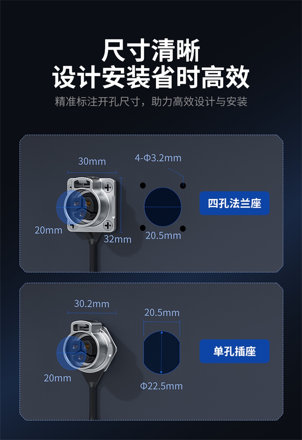 座子开孔尺寸: 20.5mm